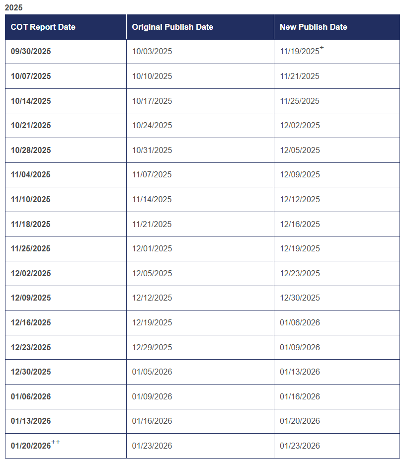 CFTC Commitment of Traders Reports started this past week, and the data will not be current until January 23, 2026.