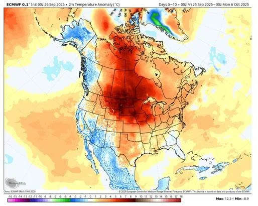 A tropical wave is across the Dominican Republic, for which NOAA gives a 90% chance of developing into a tropical storm. The system is forecast to impact the Carolinas. The models allow the weak system to make landfall as a tropical depression with needed rainfall of 1-5”. The rain will recharge soil moisture. The Canadian and US row crop harvests should be unaffected by weather with harvest yield losses being modest.